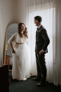 I’ll arrive after one too many coffees, buzzing with excitement, ready to capture one of the most memorable days of your life. I start early, quietly slipping into the getting-ready space to catch those little moments—the way your loved ones tear up when you reveal your dress, or your nearest and dearest cracking jokes to ease the nerves.